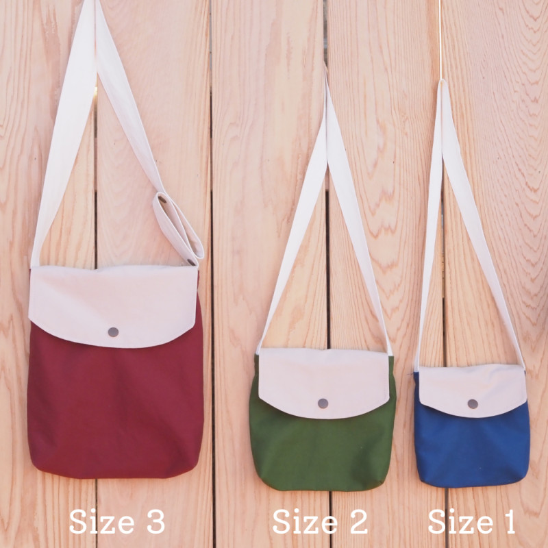 Sizes B1 and B2 have a 1 inch wide strap. Size B3 has a 1.5 inch wide strap and snaps to convert between child and adult length, perfect for when your young one tires of carrying their own bag.