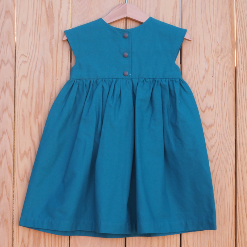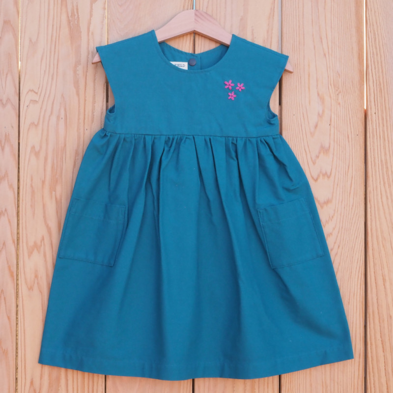 Features hand embroidery on the bodice, with patch pockets on sizes 2T through 12, and snaps in the back. Baby sizes (0-3 through 24 months) have metal ring snaps and larger sizes (2T through 12) have plastic snaps. All fabric is Oeko-Tex Standard 100 certified, so it's guaranteed free of harmful substances.